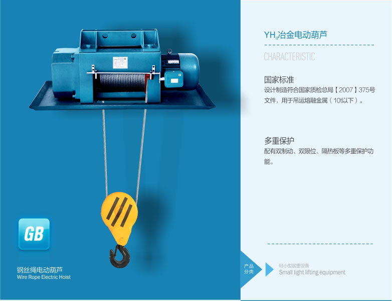 2、 冶金電動(dòng)葫蘆具有雙制動(dòng)、雙限位、隔熱板等多種保護(hù)功能。