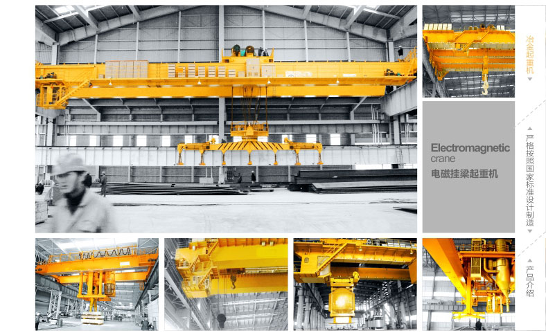 1、 本起重機(jī)帶有可拆卸的電磁盤(pán),特別適用于搬運(yùn)具有導(dǎo)磁性的黑色金屬制品與材料,如鋼錠、型鋼、生鐵塊等。主要用于鋼鐵企業(yè)軋線、成品庫(kù),船廠鋼料堆場(chǎng)、下料車(chē)間等。