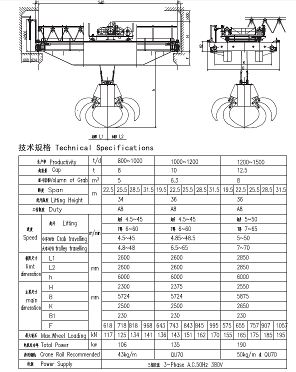 2、 我公司生產(chǎn)的垃圾抓斗起重機(jī)能執(zhí)行嚴(yán)格的提升及輸送作業(yè),確保垃圾焚燒發(fā)電廠的正常作業(yè)。