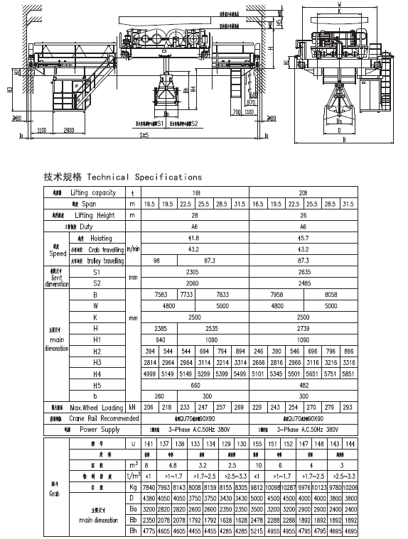 4、 額定起重量包含抓斗自重。
